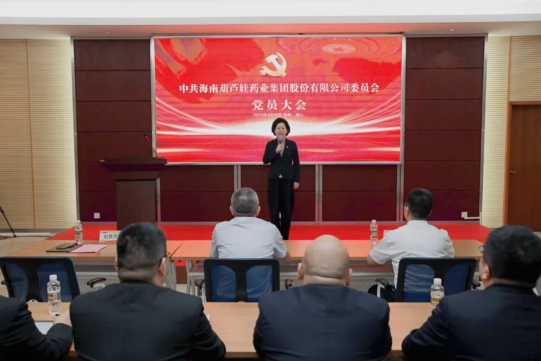 海口市高新区两新组织党委副书记傅爱萍宣读了《中共海口国家高新区非公有制经济组织和社会组织委员会关于同意成立中国共产党海南人生就是博药业集团股份有限公司委员会的批复》。